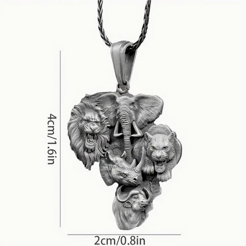 Vintage African Safari Animal Pendant Necklace - Alloy Lion, Elephant, and Rhinoceros Design