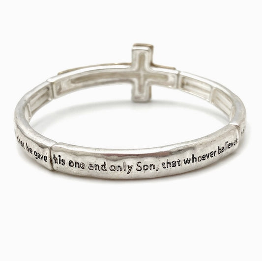 Bible Prayer John 3:16 Cross Bar Stretch Bracelet