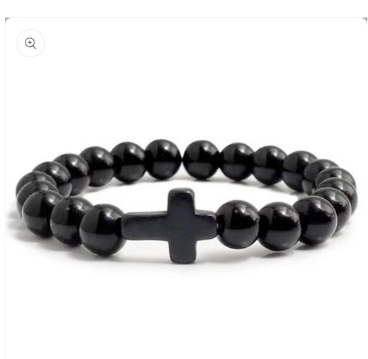 8mm Semi-Precious Stone Cross Stretch Bracelet - 6 Colors