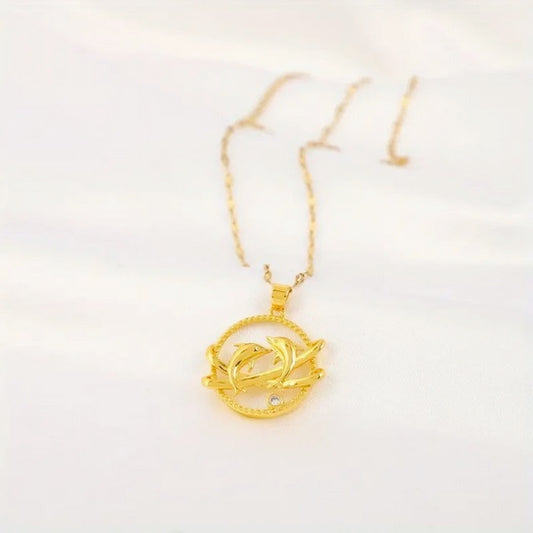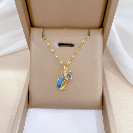Titanium Steel 18K Gold Plated Blue Dolphin Necklace
