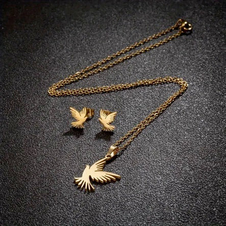 Stainless Steel Non Tanishing Peace And Holy Spirit Dove Necklace and Earrings Set