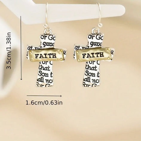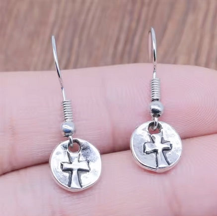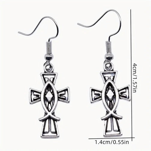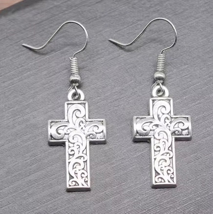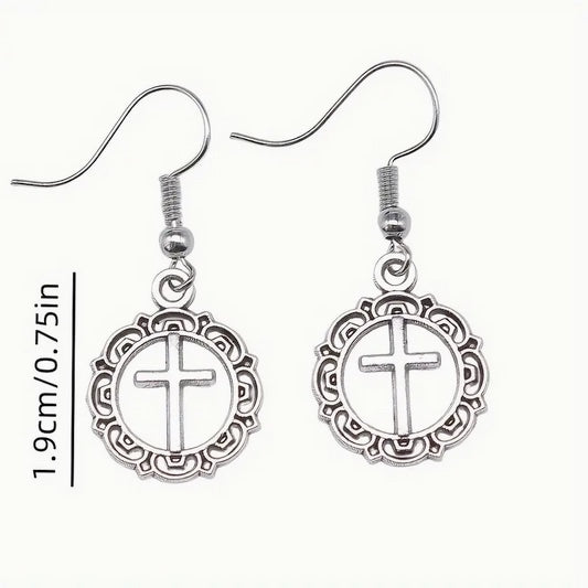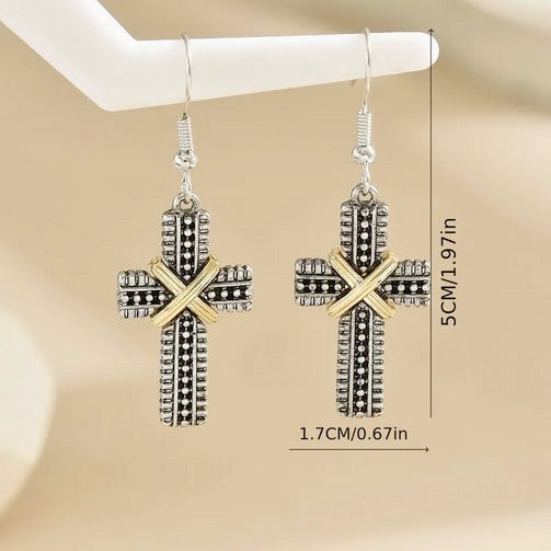 Vintage Western Style Turquoise Cross Drop Dangle Earrings Silver Plated