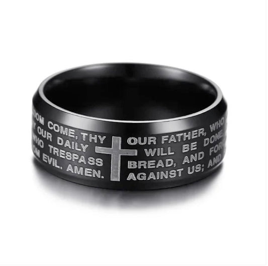 Three Piece Men's Black Faith Combo -Cross Flag And Bracelet With Cross Ring