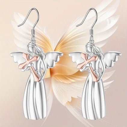 Three Piece Angel With Cross Necklace And Earring Set