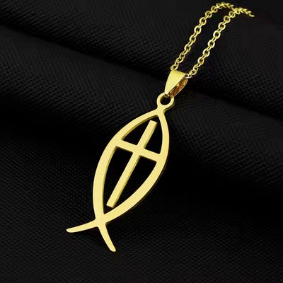 Do Not Fear For I Am With You Bible Verse Cross Necklace - Stainless Steel