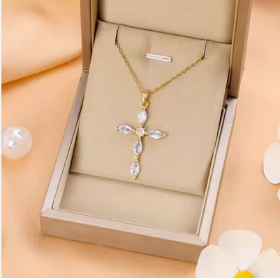 Ladies Elegant Cubic Zirconia Cross Necklace