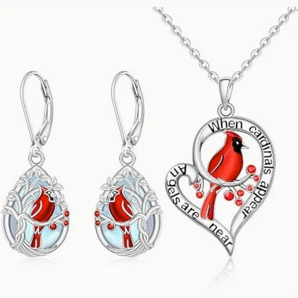 Cardinal Jewelry Set - Heart Necklace And Earrings
