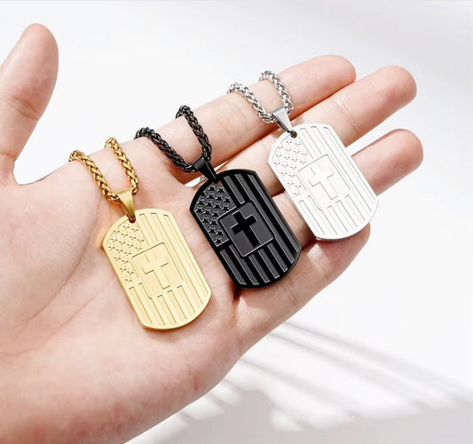 American Flag Cross Bible Verse Necklace - ON SALE NOW!