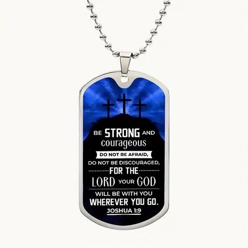 Bible Verse Be Strong And Courageous Dog Tag Style Cross Necklace