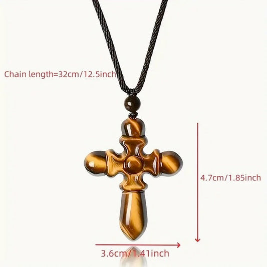 Natural Gemstone Tiger Eye Cross Necklace And Bracelet Set