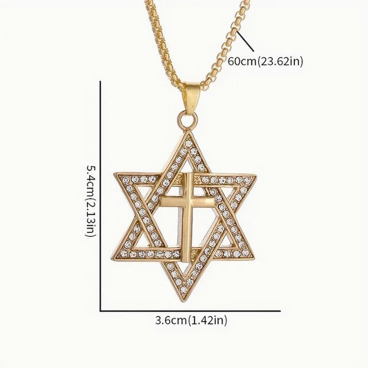 Three Layer Double Cubic Zirconia Men's Cross With Heavy Chain
