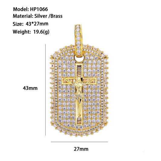 Cubic Zirconia Crucifixion Dog Tag Necklace
