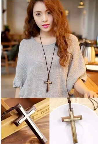 Cool Handmade Double Layer Vintage Holy Land Wood Cross Necklace With Long Cord