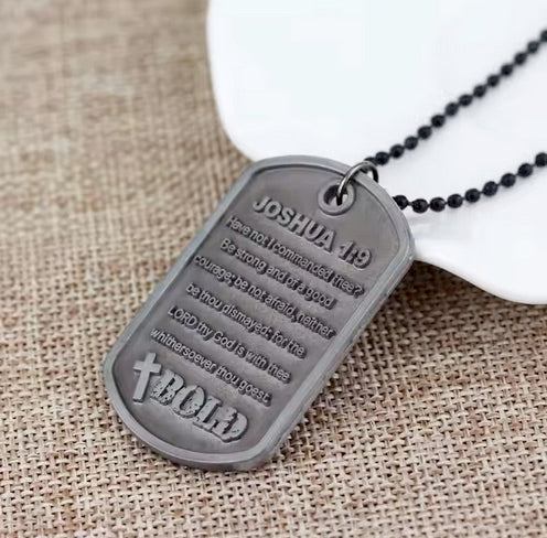 Men's Heavy "Bold" Metal Double Sided Cross Necklace With Joshua 1:9