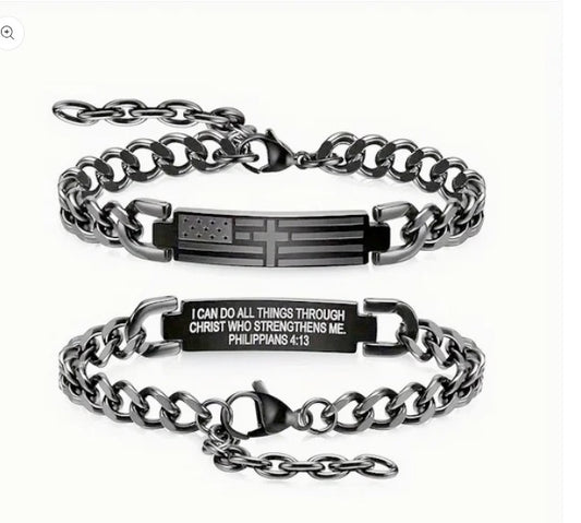 Men's American Flag Hidden Bible Verse Link Bracelet