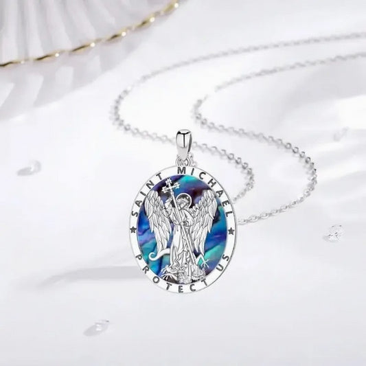 Men's Hollow Saint Michael Angel Abalone Shell Necklace