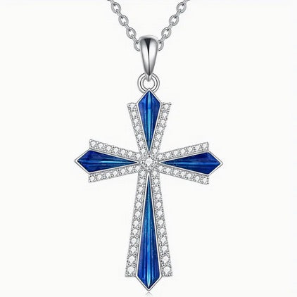 Vintage Style Blue Inlay Cross