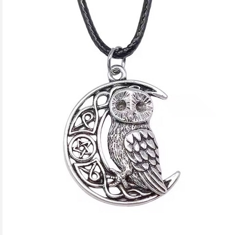 Silvery Vintage Owl Moon Bohemian Style Woman's Necklace