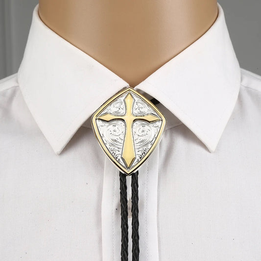 Vintage Cross Bolo Tie With Eagle Feather Dangles