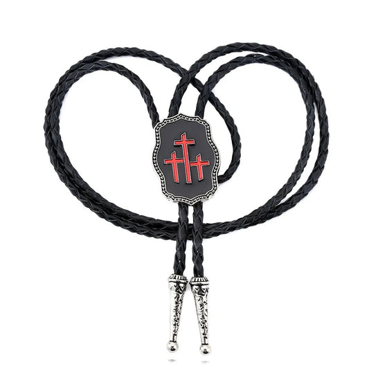Lady’s Red Cord Silver Plated Cross Bolo Tie