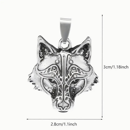 Steel Soldier Nordic Viking Detail Wolf Chain Wolf Head Pendant Necklace