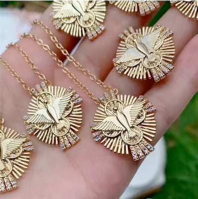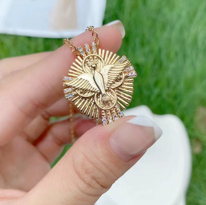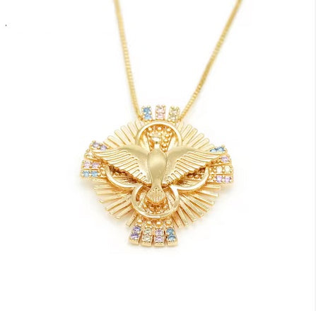 18K Plated Holy Spirit Dove Cross CZ Necklace