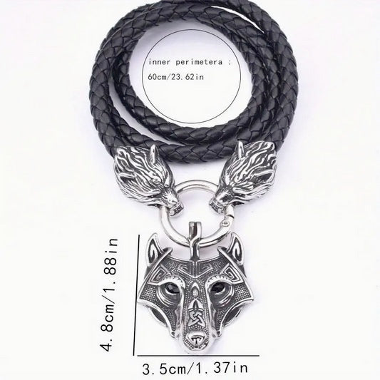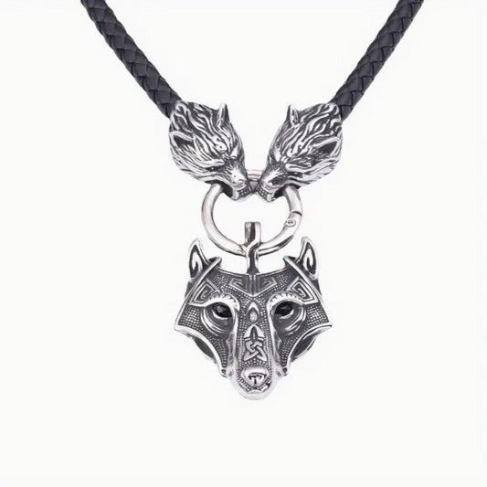 Deluxe Handcrafted Wolf Celtic Viking Amulet On Braided Leather Cord