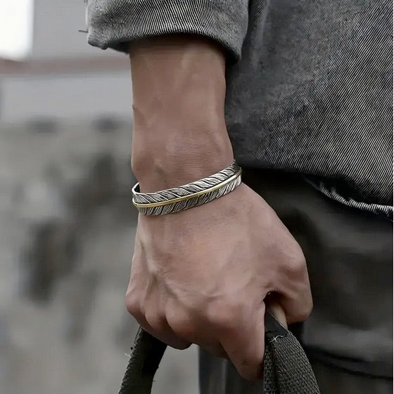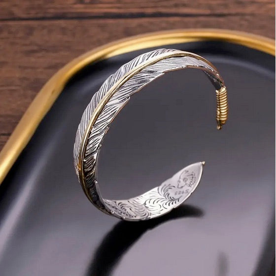 Eagle Feather Two Tone Adjustable Cuff Bracelet