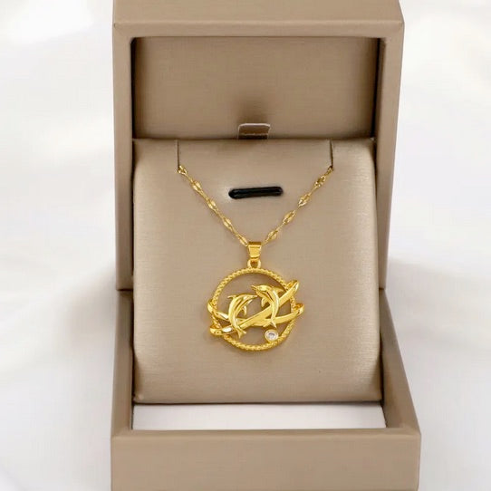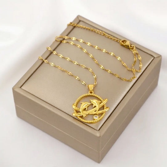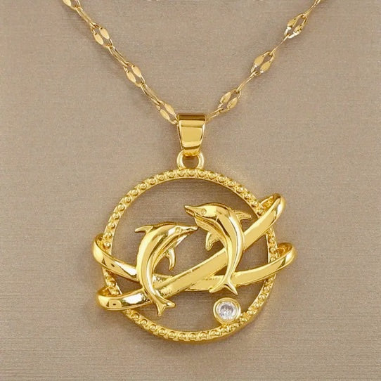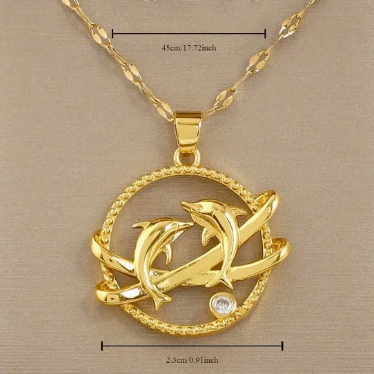 Elegant Save the Dolphin 18K Gold-Plated Titanium Necklace with CZ