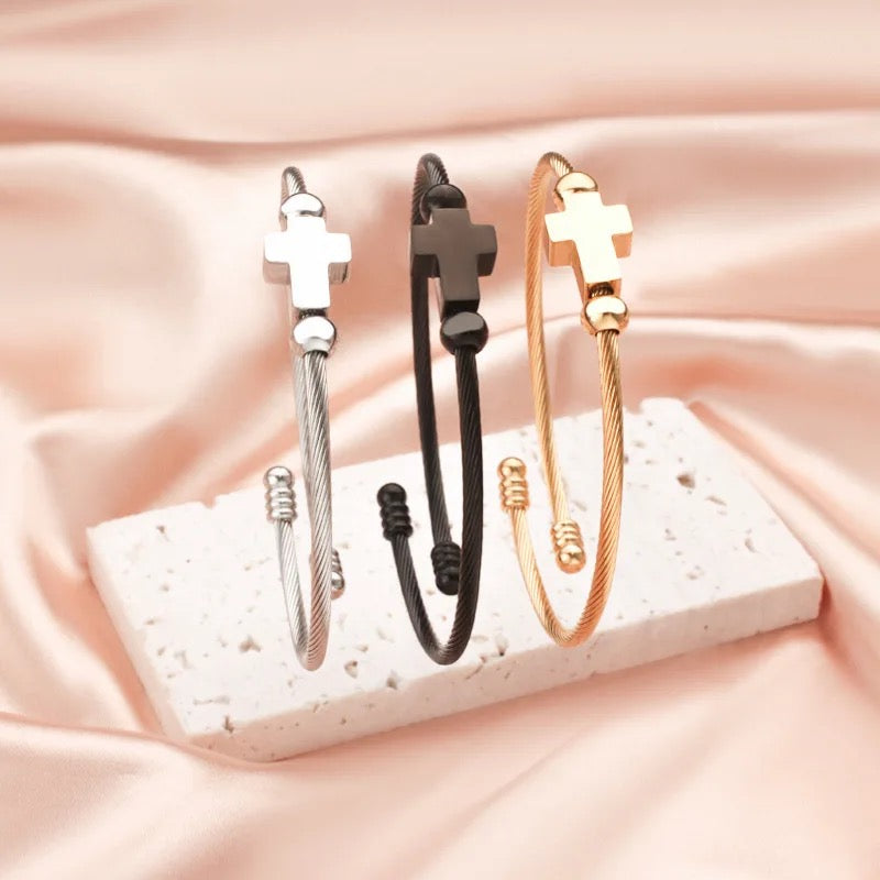 About The Cross And Your Cross Bracelet: Long lasting stainless steel - 3 Colors to pick from! The cross is a primary symbol of the Christian religion and the sign of the faith of Christians. Cross jewelry recalls the Crucifixion of Jesus Christ and the redeeming benefits of his Passion and death. The essence of the cross contains suffering, love, patience, obedience, humility, forgiveness, dedication, redemption, etc. Enlightenment brings inner peace and unconditional love, transcending ego and connecting individuals with the universe. Enlightened people live in the present, reducing anxiety and showing greater compassion. They experience more harmonious relationships, enhanced creativity, and improved well-being. With a transcendent view of life and death, they find deep meaning in every moment. Overall, enlightenment leads to a more peaceful, fulfilling, and meaningful life—a state many aspire to achieve.