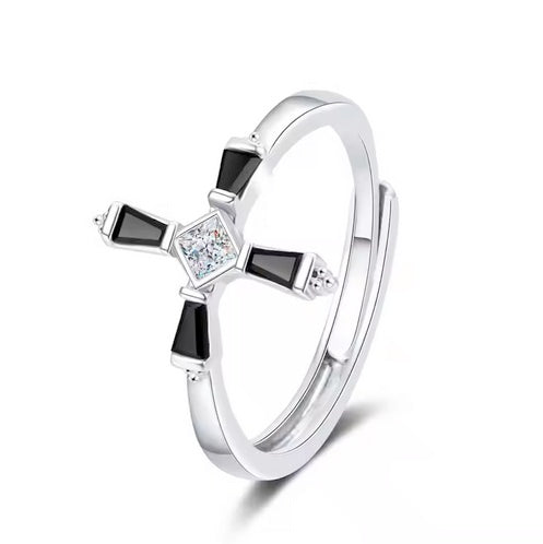 Men/Women Black Stone And Zircon Center Cross Ring (adjustable)