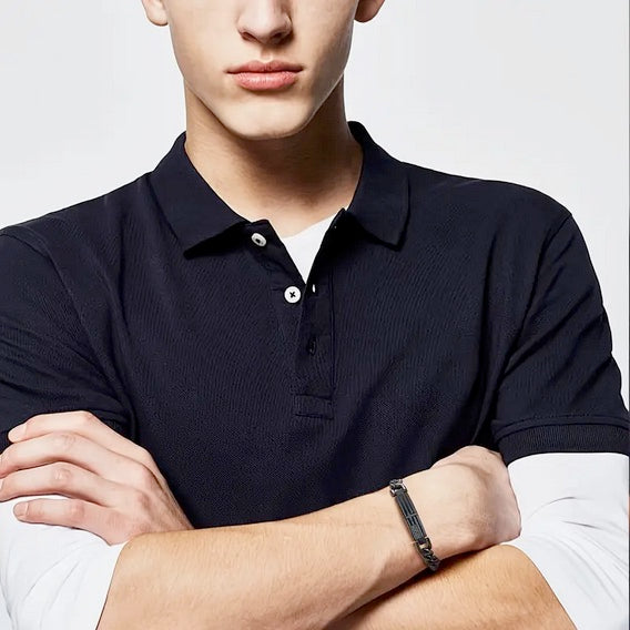 Wear both your faith and your patriotism at the same time with this black link bracelet that is adjustable! On the underside of the bracelet is engraved with the bible verse, "I can do all things through Christ who strengthens me" - Philippians 4:13. Long lasting no tarnish stainless steel chain. Adjustable size from 7.48 inches to 9.45 inches.