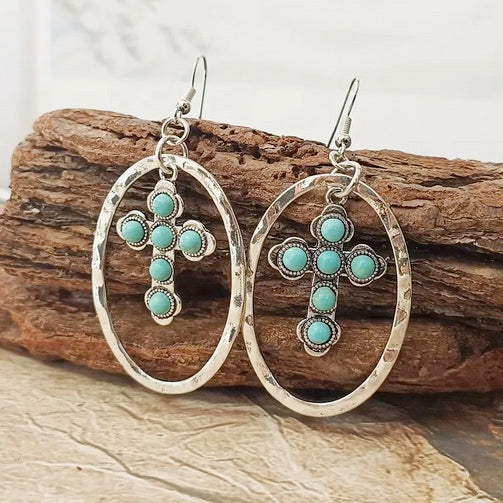Oval Cross Dangle Earrings