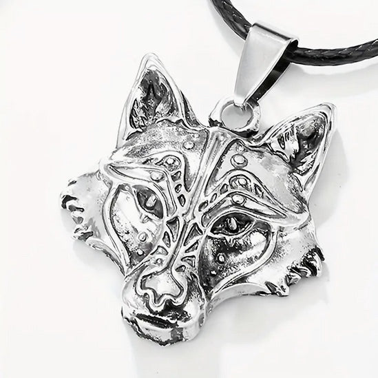 Silvery Wolf Head On 22 Inch Length Adjustable Leather Cord