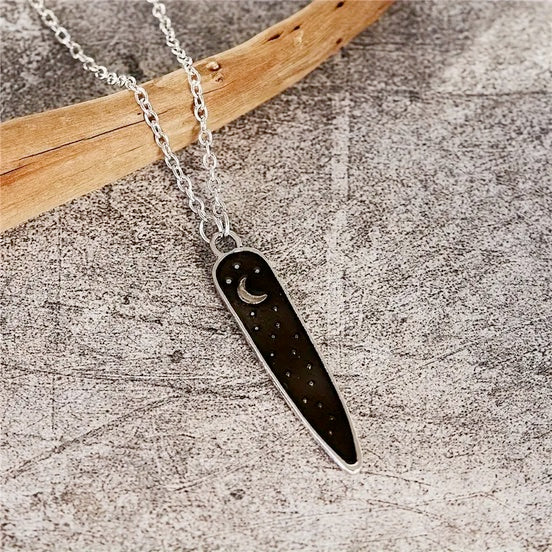 Silvery Vintage Owl Moon Bohemian Style Woman's Necklace