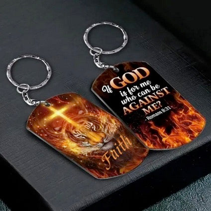 Tiger, Cross And "Fatih" On One Side And The Bible Verse, 'If God Is For Me Who Can Be Against Me" - Romans 8:31 on the other side.